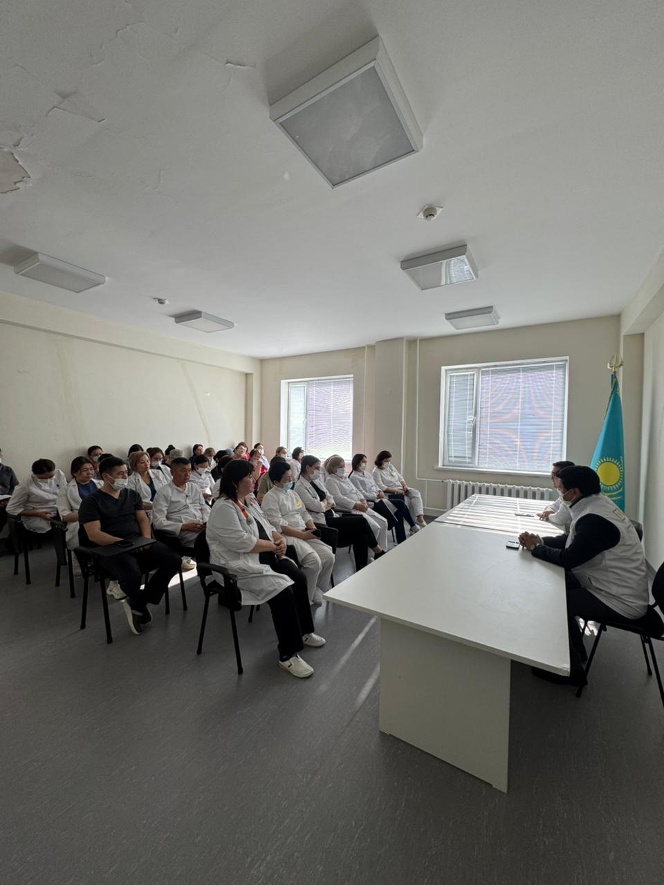 Сегодня в рамках информационной кампании по вопросам предстоящего республиканского референдума по внесению изменений и дополнений в Конституцию Республики Казахстан в ГКП на ПХВ «Городской инфекционный центр» акимата г. Астана состоялась встреча коллектива медицинских работников со спикерами Сахарией Баянды и Болатбеком Айткей.