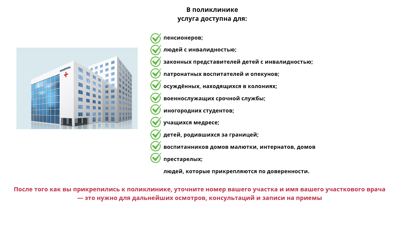 В самой поликлинике услуга доступна для: