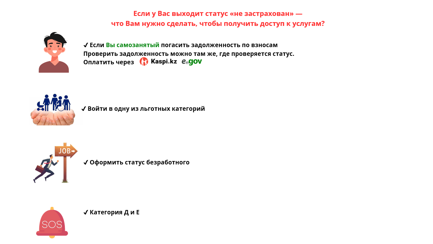 Если у Вас выходит статус «не застрахован» — что Вам нужно сделать, чтобы получить доступ к услугам?