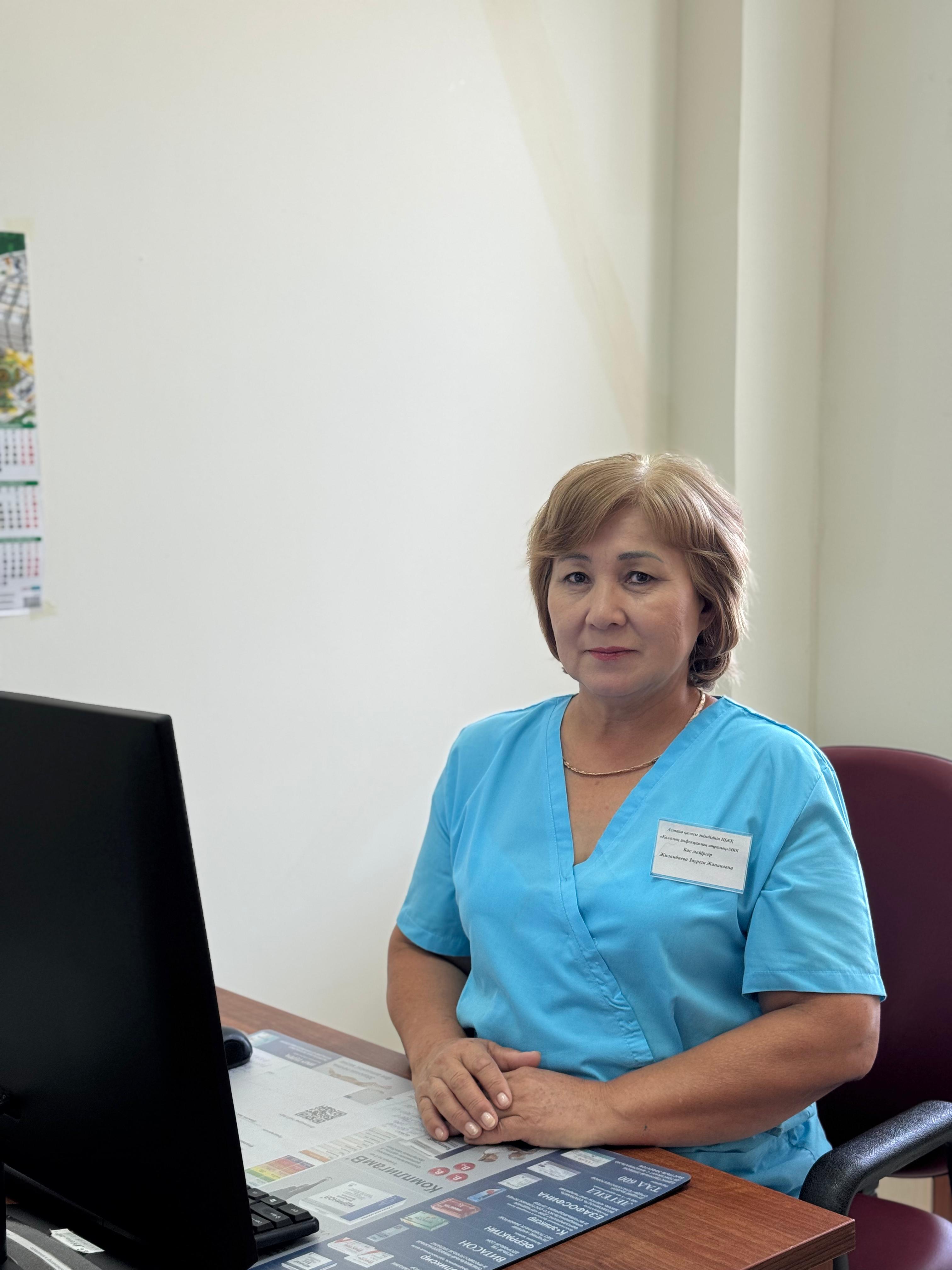 Жилкибаева Зауреш Жанановна - главная медсестра ГКП на ПХВ «Городской инфекционный центр» акимата города Астана.